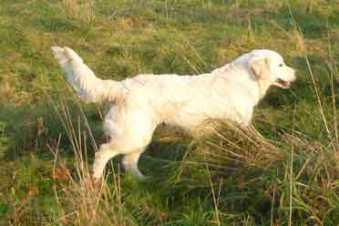 Unsere Kleiner ist aus unserem A- Wurf bei uns geblieben. Er ist ein fröhlicher Kerl mit einem ausgeglichenen Temperament. Er schafft es unglaublich schnell, sich runter zu fahren und alles relaxt anzugehen, aber ist dann auch schnell wieder zu motivieren und aktiv. Wir sind gespannt, wie er sich noch entwickeln wird. Er hat das cremefarbene Fell seiner Mutter geerbt und die riesigen Pfoten vom Vater. Schon jetzt mit 4 Monaten liebt er es Dummy zu apportieren und holt sie auch gern aus dem Wasser. Mit seiner Mutter versteht er sich blendend, und sie toben sehr oft miteinander. Er ist sehr sozial sehr verträglich und auch mit anderen Tieren versteht er sich prima. Überhaupt gibt es fast nichts, was ihn aus dem Konzept bringt. Er geht neugierig und gelassen auf alles zu, es sei denn, andere Hunde sind aggressiv, dann zieht er sich eher zurück. Wir sind glücklich, daß das Schicksal ihn wieder zu uns zurück gebracht hat, es sollte wohl so sein.