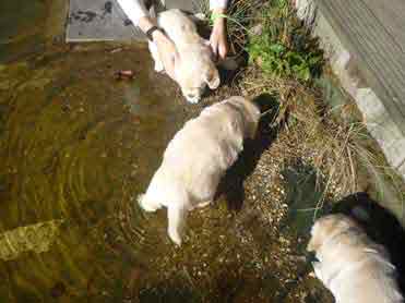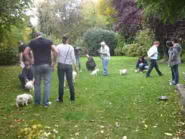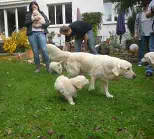 Heute haben alle Welpeneltern mit uns und den Welpen einen gemeinsamen Ausflug in den Garten von Sabine und Reiner gemacht, die Bonny aus dem B-Wurf haben. Vielen Dank nochmal dafür, auch für die tatkräftige Unterstützung eurer Söhne und Freundin beim einfangen der Kleinen. Die Kleinen haben sich beim Autofahren sehr relaxt benommen, im Garten waren sie dann ganz in ihrem Element. Bonny die ganz wie Mama Lina aussieht, war ganz cool, auch wenn die Welpen bei ihr vergeblich die Milchbar suchten. Es wurde getobt und alles genau inspiziert. Manche verbotene Bereiche, z.B. der Teich, waren natürlich besonders interessant , da wurde dann mit großer Ausdauer versucht, es doch endlich zu schaffen. Wir hatte so tolles Wetter, und ich denke, es war für alle ein schöner Nachmittag gewesen.