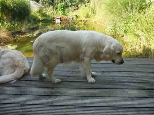 Lina am 61 Tag ihre Trächtigkeit. Sie stöhnt sehr oft und das Laufen ist sehr mühsam geworden. Die Spaziergänge sind sehr kurz. Mit Flash gibts meist danach noch eine Radtour. Mit Jedem will sie kuscheln und zeigt ganz stolz ihren Bauch. Die Welpen strampeln wie wild im Bauch. Wir sind gespannt wann es losgeht. Wir schlafen ab heute unten im Welpenzimmer.