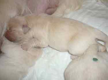 Unglaublich, die Welpen sind heute schon eine Woche alt. Sie haben alle ihr Geburtsgewicht verdoppelt. Alle wiegen zwischen 940 und 980 g, die rote Dame sogar 1060 g. Lina ist immer noch sehr fürsorglich. Ihr tut gut, dass die Temperatur gesunken ist. Sie hat doch unter der Hitze ganz schön gelitten und viel gehechelt. Den Kleinen gefällt es nicht, morgens in einen Korb gelegt zu werden, damit die Welpenkiste neu bezogen werden kann, dann jammern sie die ganze Zeit .